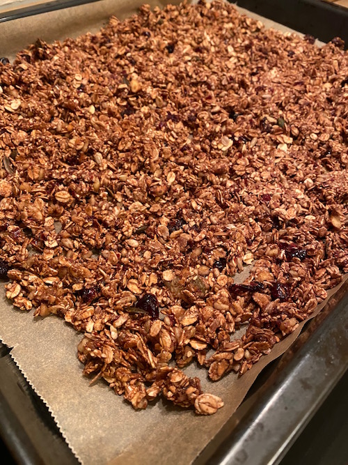 5 - A la sortie du four, laissez votre granola refroidir avant de le mettre dans une boite hermétique.